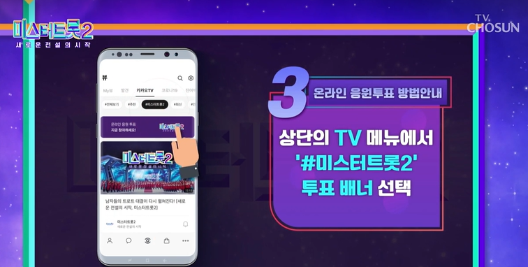 다음검색창에서 "미스터트롯2"를 검하신 후 투표배너를 클릭하시거나